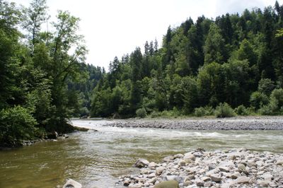 The Bregenzerach Gorge extends through seven municipalities, featuring steep rock faces alongside a flowing river that shapes the landscape.