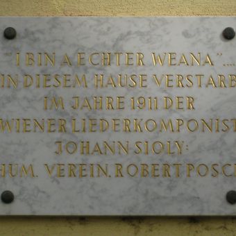 Gedenktafel Johann Sioly, Gedenktafel am Gebäude Myrthengasse 4, Wien Neubau