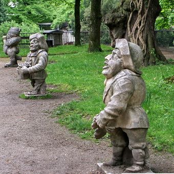 The dwarf figures, carved from Untersberg marble over 320 years ago, include specific characters such as a gardener with a bump on his head and dwarfs playing pallone.