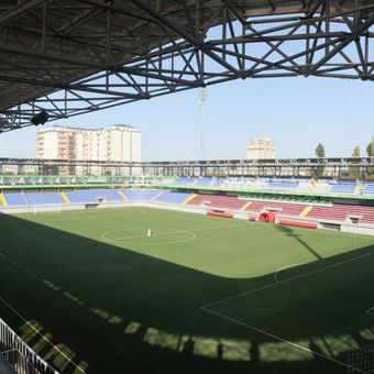 The Bakcell Arena features a grass playing surface and modern facilities spread across multiple levels with seating arranged in covered stands for 15,000 spectators.