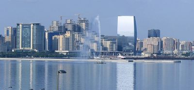 Port Baku Towers consist of two glass-clad buildings reaching 36 and 32 floors, positioned along Neftchilar Avenue near the marine port.
