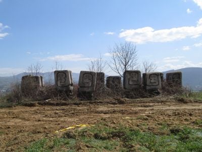 The stone monuments were designed by architect Bogdan Bogdanović and shape how this place looks and is experienced. Visitors often see different meanings in the shapes: some recognize dragon sentinels, others see paired snakes or soldier heads.