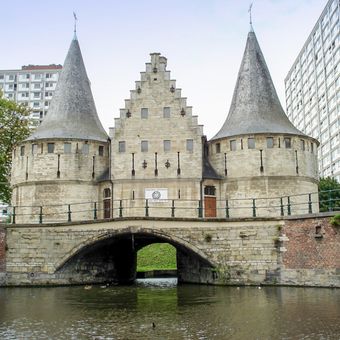 The Rabot is a medieval defensive structure in Ghent built from two hefty stone towers with a fortified passage between them spanning the Lieve river. The passage's gateway regulated boat traffic and allowed officials to monitor and control who entered the city by water.