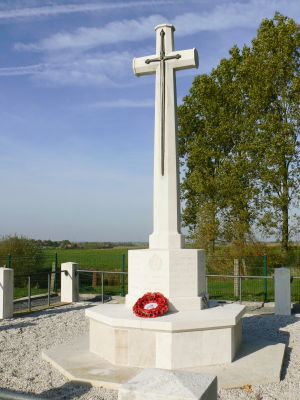 The RE Grave site contains a Cross of Sacrifice marking the location where twelve Royal Engineers soldiers remain buried beneath the ground.