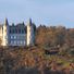 The Royal Castle of Ciergnon sits on a terrace overlooking deep forest valleys within the Ardenne domain near Namur in Wallonia. The building contains royal living spaces and formal rooms set within maintained grounds that blend into the surrounding woodlands.