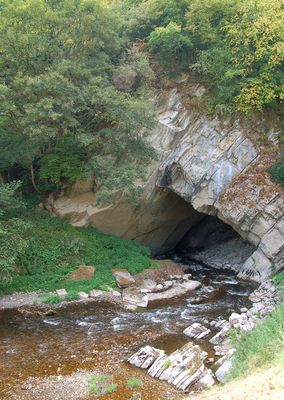 During winter floods, the Lesse River overflows the sinkhole's absorption capacity, temporarily returning to its ancient surface course around the Boine massif.
