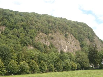 The Slope of Goats extends over sixty hectares along the right bank of the Amblève River, featuring a vertical rock face between Remouchamps and Aywaille.