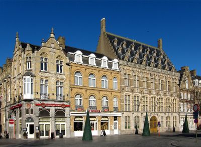 Grote Markt, Medieval central square in Ypres, Belgium.