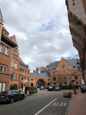 Architect Adrien Blomme designed the square's layout and approximately fifteen houses between 1924 and 1925 for the Compagnie Générale d'Entreprises Immobilières.