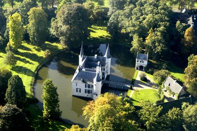 The castle remains private property within the Gestel village area, surrounded by a long chestnut tree avenue leading to the entrance gate.