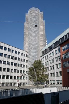 The tower incorporates an open staircase design that required specific engineering solutions to meet fire safety regulations during the 2006-2009 renovation.