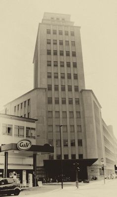 Den Bell consists of a central 58-meter tower and surrounding office buildings at Francis Wellesplein, accommodating over 2000 municipal employees.