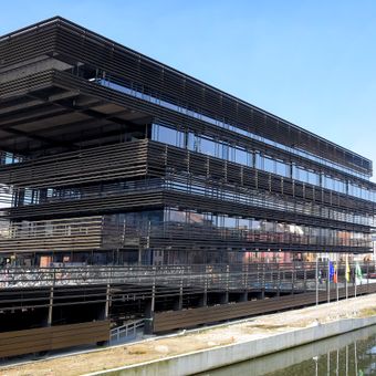 Ghent Public Library, Modern public library in Waalse Krook, Ghent, Belgium.