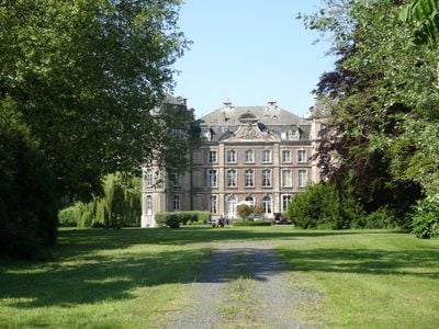 The castle grounds contain an 1850 orangerie, coach houses, a horse well with drinking troughs, and tributaries of the Bouvriebeek that originate on the property.