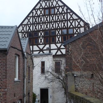 The building is viewable from the street, where the timber frame structure is clearly visible and one can study the different construction techniques used. Those interested in understanding the interior can observe the arrangement and spacing of wooden elements from a good vantage point outside.