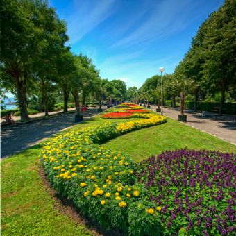 The Sea Garden stretches over 5 kilometers along the Black Sea coast, featuring numerous walking paths, sculptures, and botanical displays from different continents.