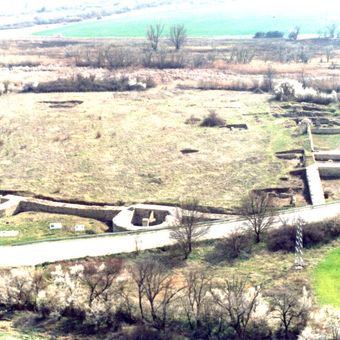 The site contains an undeciphered Latin inscription outside the northern wall and features an underground aqueduct system made of clay pipes for water supply.