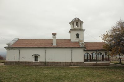 The Saint Theodore Stratelates Monastery features traditional Bulgarian ecclesiastical architecture with a simple facade and dedicated worship spaces within its walls.