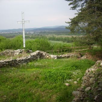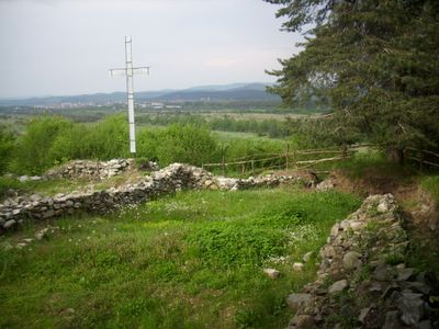 A cross positioned at the summit of the hill symbolizes Bulgarian faith, marking this archaeological monument of national significance in Bulgarian history.