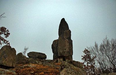 Archaeological findings include numerous ceramic fragments around the stone structures, indicating the presence of ancient priests performing fertility rituals.