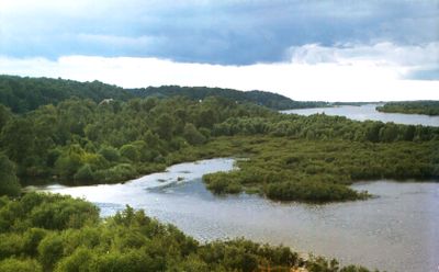 The Pripyat River extends 761 kilometers through Ukraine and Belarus, featuring extensive marshlands and connecting to the Dnieper River at the Kyiv Reservoir.