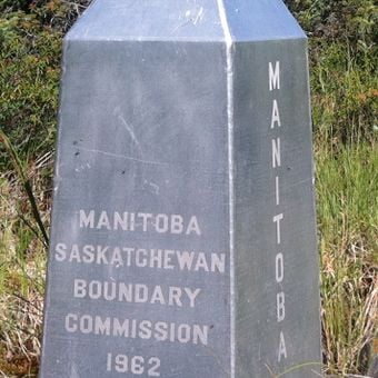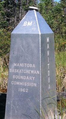 Survey crews installed Monument 157, an aluminum obelisk, during the winter of 1961-1962 to mark the intersection of Manitoba, Saskatchewan, and Northwest Territories boundaries.