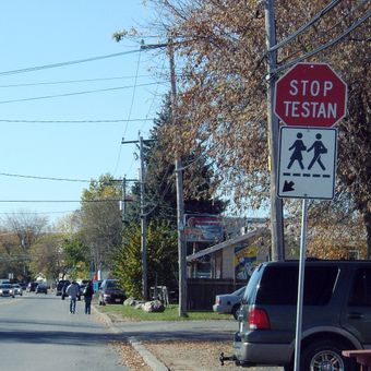 The name comes from the Mohawk language and means "at the rapids", referring to the waterway that shaped daily life here for centuries. Many homes display the Haudenosaunee flag alongside Canadian symbols, showing how residents maintain their identity while living near a major city.