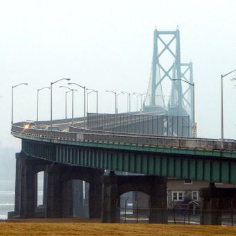 Ogdensburg–Prescott International Bridge, Suspension bridge over Saint Lawrence River between New York and Ontario.