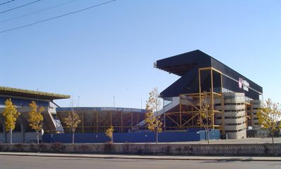 Built in 1953, the stadium underwent several expansions, including the addition of upper tiers in the west stands in 1972 and east stands in 1978.