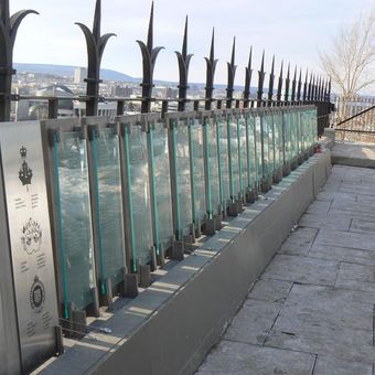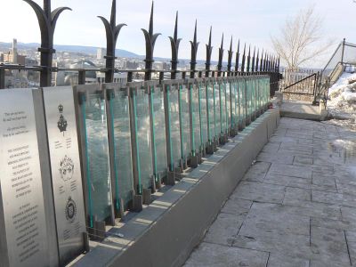 The Canadian Police and Peace Officers Memorial features glass panels and a restored 1877 gazebo on the northwest corner of Parliament Hill grounds.
