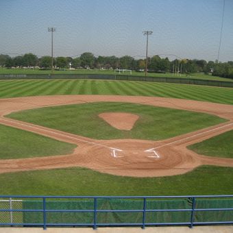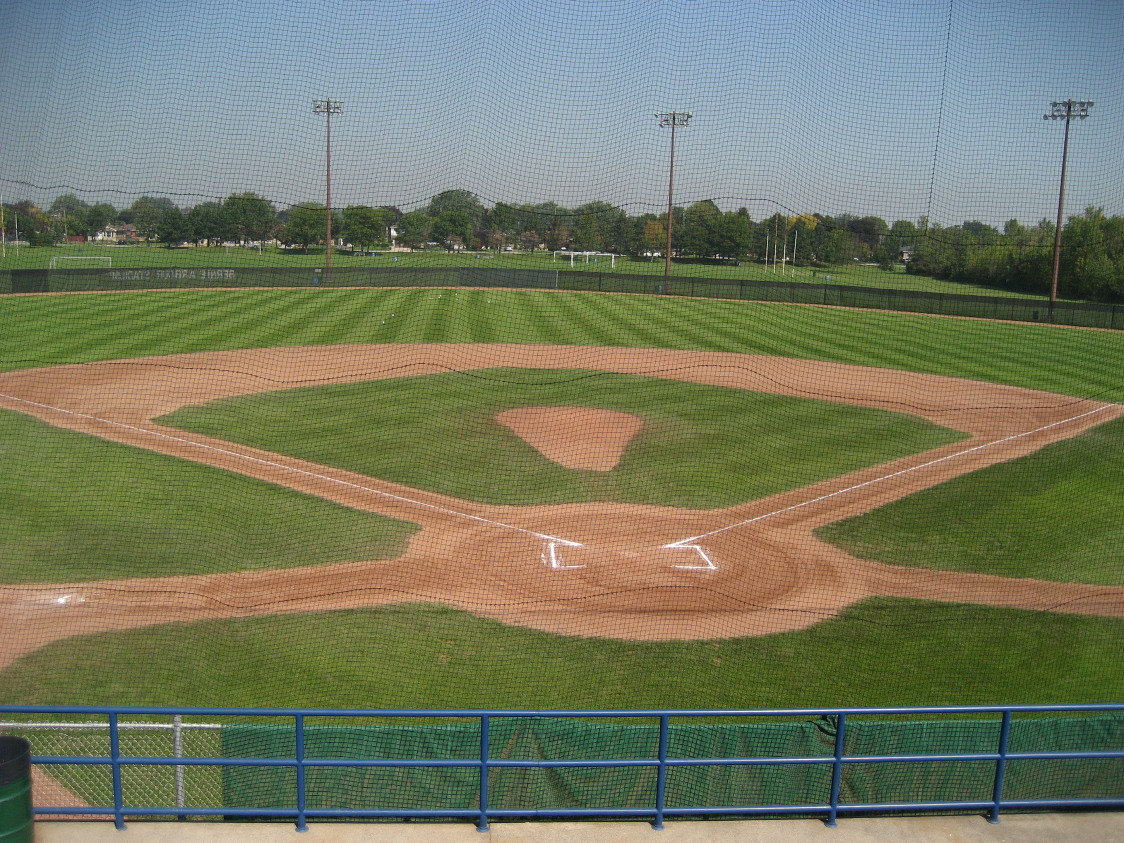 The baseball field dimensions extend 300 feet down left field, 325 feet down right field, and 405 feet to straight-away center.