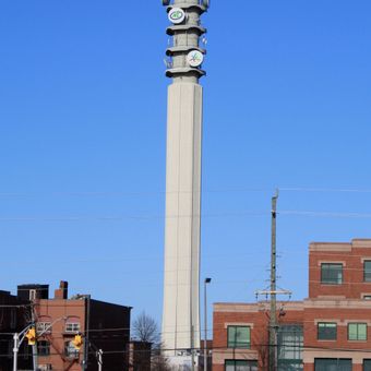 This concrete tower marks the location of Moncton's first telephone exchange from 1883, representing the evolution of telecommunications in New Brunswick.
