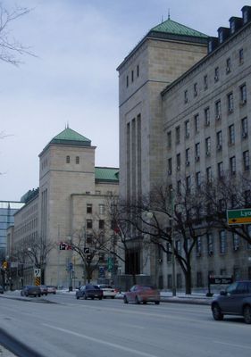 East and West Memorial Buildings, Art Deco federal memorial buildings on Wellington Street, Ottawa, Canada.
