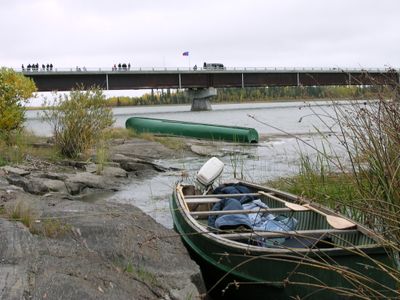The structure carries Provincial Road 374 and provides the only permanent road connection between northeastern Manitoba and the rest of Canada.