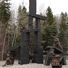 The Kirkland Lake Miners' Memorial features a 32-foot black granite structure shaped like a head frame, surrounded by five life-sized bronze miner statues.
