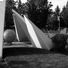 The memorial features a rectangular central block positioned between two sloping wings, angled backward at roughly 50 degrees. This distinctive architectural arrangement creates a visually striking profile that stands out when viewed from different parts of the cemetery.