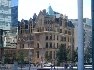 E.J. Lennox designed this structure in 1894 for the Toronto Athletic Club, which later transformed into the Central Technical School and police headquarters.