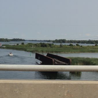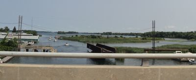 The Atherley Narrows Swing Bridge contains nine steel through plate girder sections supported by eight steel pile foundations at Lake Simcoe and Lake Couchiching junction.