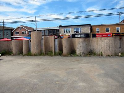 The structure stands at coordinates 44.6453°N, -63.5971°W, serving as a barrier between the street and a parking area for the former bakery.