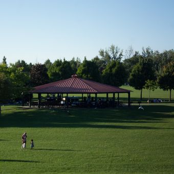 Milliken Park spans 32 hectares and features three playgrounds, a splash pad, picnic areas, walking trails, mature trees, and open green spaces for recreational activities.