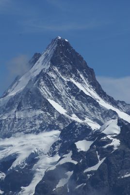 Schreckhorn, Alpine mountain peak in Grindelwald, Switzerland.