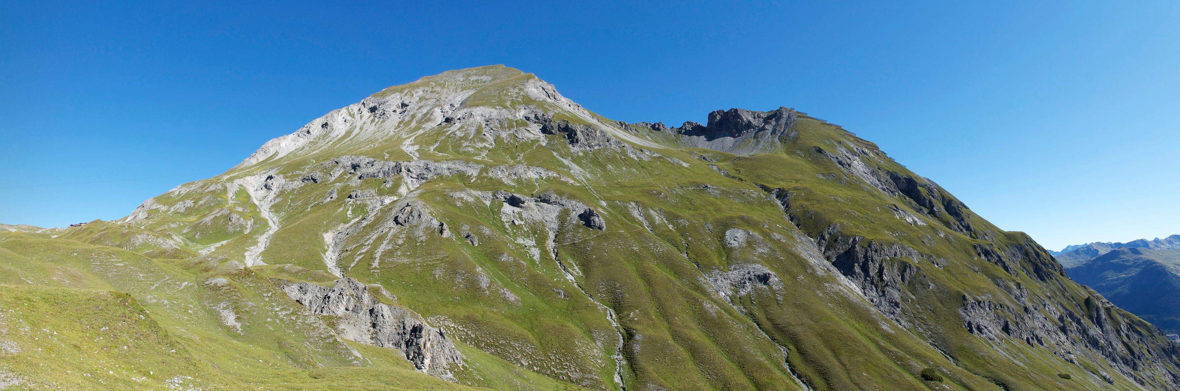 Schiahorn reaches an elevation of 2,709 meters and presents a southeastern gully route leading to expansive views of Dischma and Sertig valleys.