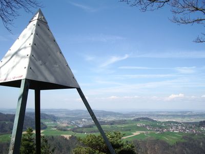 The summit contains observation points that allow visitors to see both the Rhine River valley and the northern Swiss plateau on clear days.