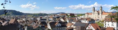 The municipality of Einsiedeln extends across 99 square kilometers of agricultural lands and forests at an elevation of 882 meters in central Switzerland.
