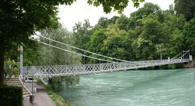 The Altenbergsteg spans 54 meters across the Aare River, connecting the Old Town of Bern with the northern Altenberg residential district.