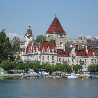 Château d'Ouchy, Neo-gothic castle and hotel near Lake Geneva in Lausanne, Switzerland.