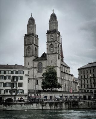Grossmünster, Romanesque Protestant church in Old Town, Switzerland
