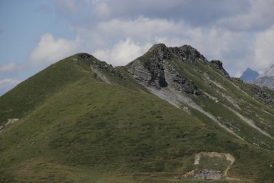 The Arnenhorn rises between the cantons of Vaud and Bern, featuring steep limestone cliffs and alpine meadows across its slopes.