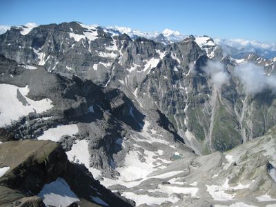 The Helsengletscher glacier adorns the western face of the mountain, while the eastern side features a steep wall overlooking Kriegalp Pass.