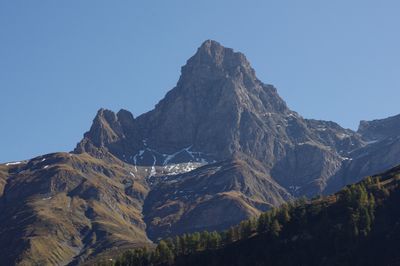 From certain vantage points along the Swiss A13 motorway, Einshorn forms an optical illusion with Pizzo Ucello, creating different visual perspectives for passing travelers.